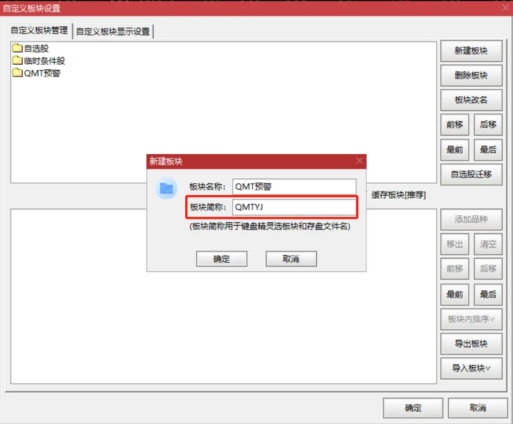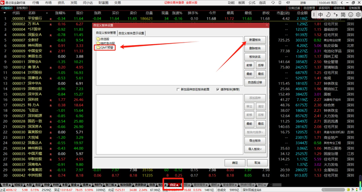 填入通达信自建板块的本地路径,通达信底部【自定】→【自定义板块设置】→【新建板块】