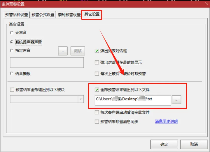 填入通达信预警信号的本地文本路径,在首页找到【功能】→【预警和复盘】→【条件预警设置】→【其他设置】