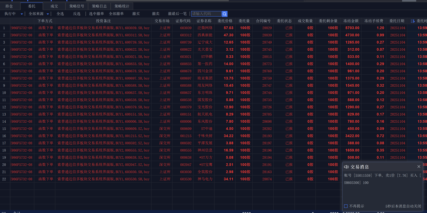通达信预警信号,需要手动下单,但信号太多时,手动跟不上,且需要时刻盯盘。