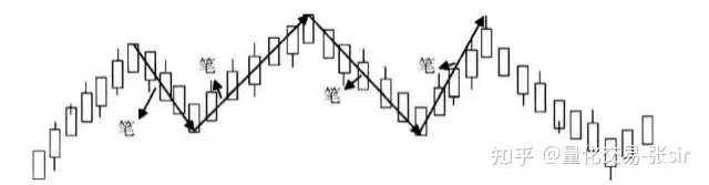 笔简单来讲就是连接顶分型和底分型的k线 ,笔的⻓度⾄少是1根k线 ,在具体识别中有以下⼏点要 注意: