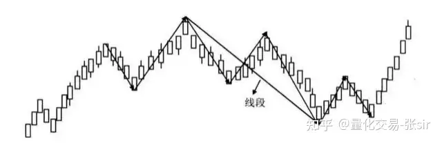 从向上笔起点开始的线段经过有重叠部分的向下笔后 ,只要没有遇到由前后相继的向下的三笔形 成的顶分型 ,那么该线段就会延伸下去 ,直到遇到由前后相继的向下的三笔形成的顶分型 ,那么 该线段就结束于此顶分型的顶 ,新的线段⼜从此顶分型的顶开始形成、延伸。从向下笔开始的线 段同理。
