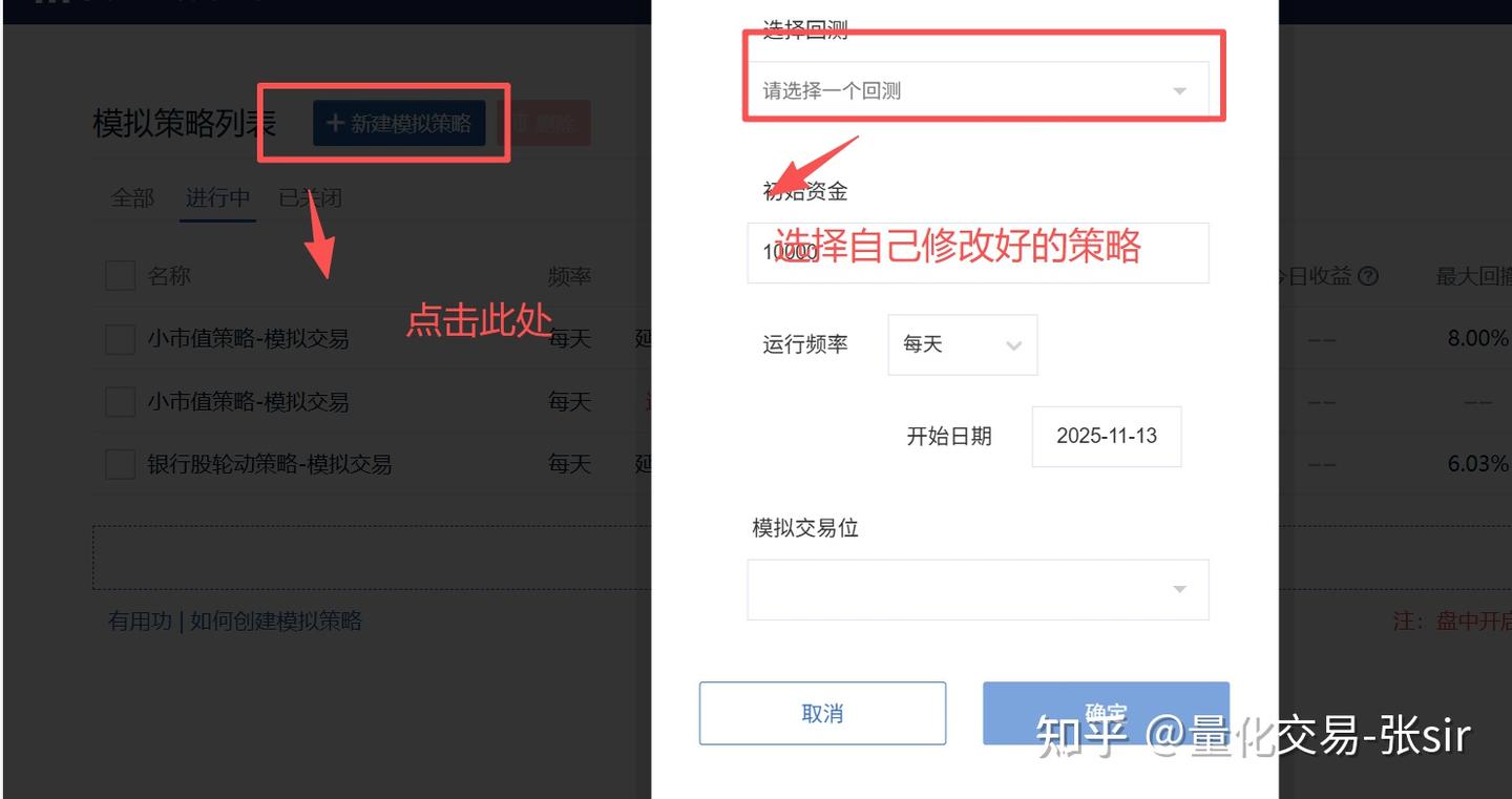 - 在聚宽平台上,打开策略列表,找到你想要对接的策略。这个策略应该已经过充分的回测和调试,能够在聚宽的模拟环境中稳定运行。