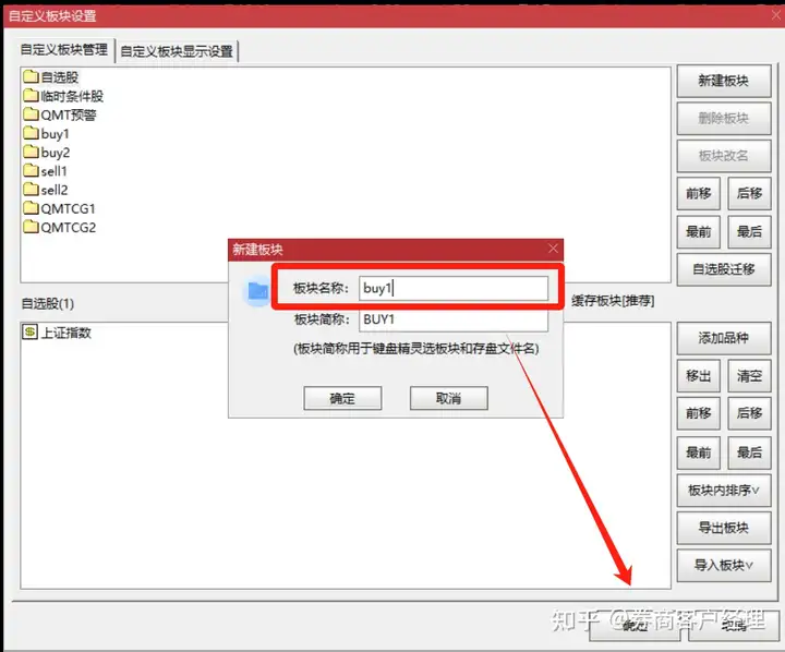 买入板块1就直接输入【buy1】,以此类推,买入板块2就是【buy2】,设置好后点击确认就行。