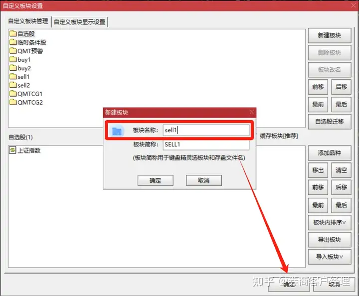 持仓板块1就直接输入【QMTCG1】,持仓板块就是【QMTCG2】,点击确认就行。