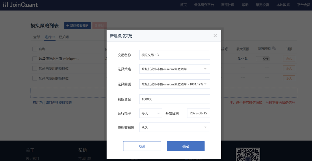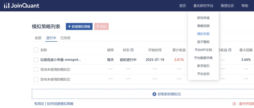 并把改好的策略挂聚宽模拟交易,让策略正常运行。