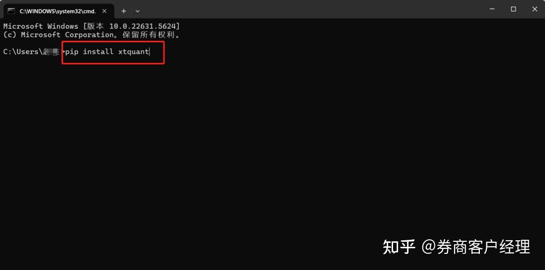 在命令行里输入 “pip install xtquant”,再按电脑回车键,它就开始自动下载安装了。要是安装速度有点慢,耐心等等。