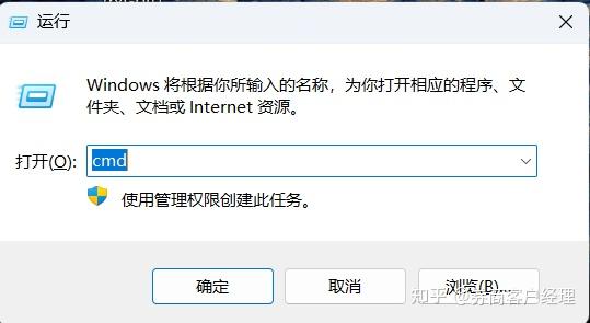 键盘输入 “Win + R” 快捷键,打开运行框,输入 “cmd”,回车打开命令行窗口。