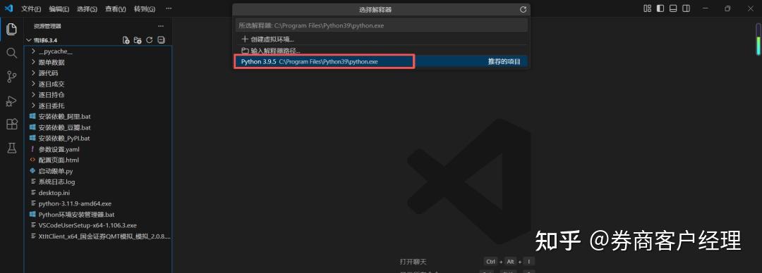 在VScode按Ctrl+shift+P键,弹出选项后点击“选择解释器”,点击后再选择你安装的python版本。